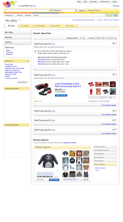 ![]() I started detailing out the seller modules. Seller information is displayed at the top. New items added are easily noticeable. | ![]() Wireframe - Saved searches | ![]() |